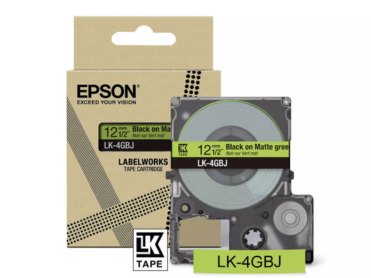 EPSON LK-4GBJ MATTE TAPE GREEN/BLACK 12MM (8M)