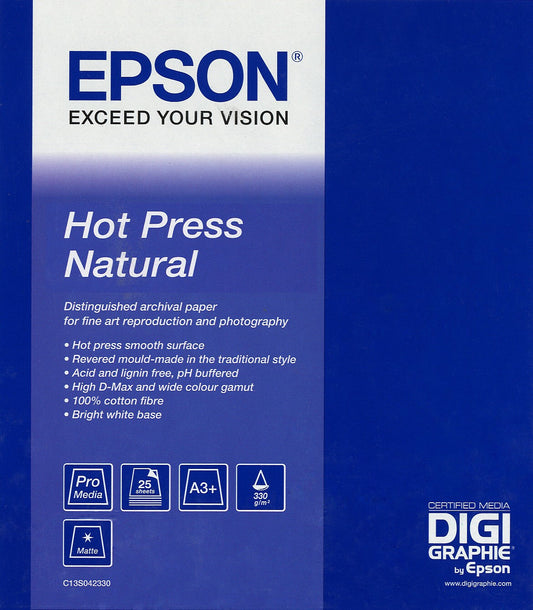 Epson Hot Press Natural, A3+, 25 Sheets
