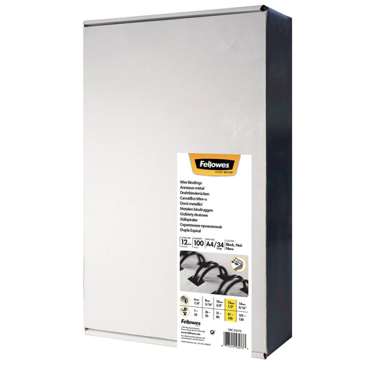 Fellowes Wire Binding Element 12mm Black (Pack of 100) 53273