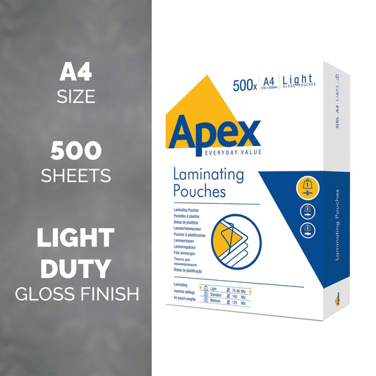 Fellowes Apex A4 Light Duty Laminating Pouch (Pack of 500) 6005201