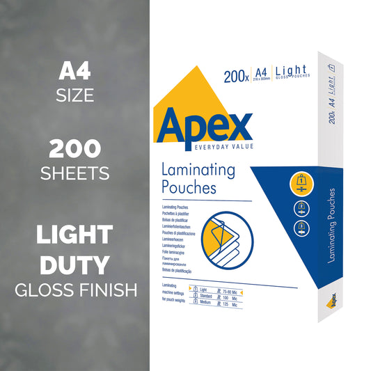 Fellowes Apex A4 Light Duty Laminating Pouch (Pack of 200) 6005301