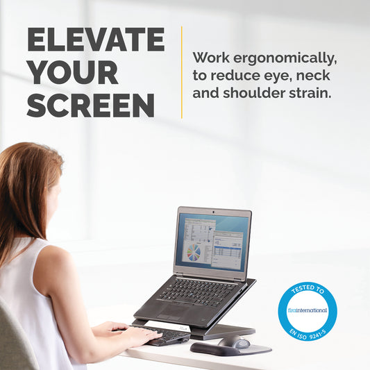 Fellowes Laptop Stand for Desk - Office Suites Plus Adjustable Laptop Stand for the Home and Office - Laptop Riser with 5 Height Adjustments - Max Monitor Size 17", Max Weight 5KG - Black/Silver