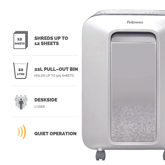 Fellowes LX Series Paper Shredder LX221 20 Sheet Micro Cut Shredder with 30 Litre Pull Out Bin Superior Security P5 White