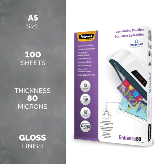 Fellowes ImageLast A5 Laminating Pouch 80 Micron Clear Gloss (Pack of 100) 5306002