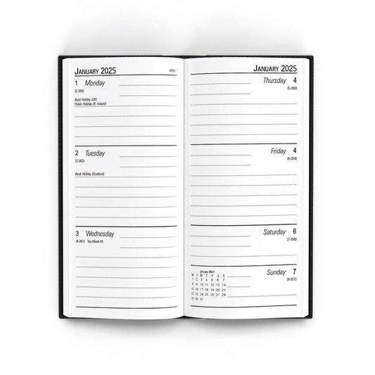 Slim Desk Diary Portrait Week To View Black 2025 KF1BK25