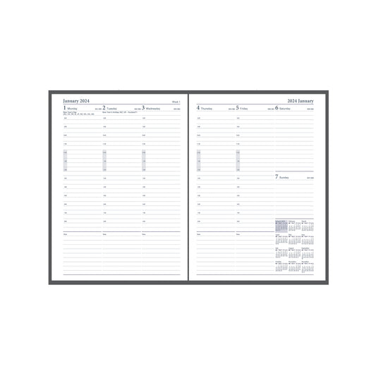 Desk Diary 2 Pages Per Day A4 Black 2024 KF2A4BK24
