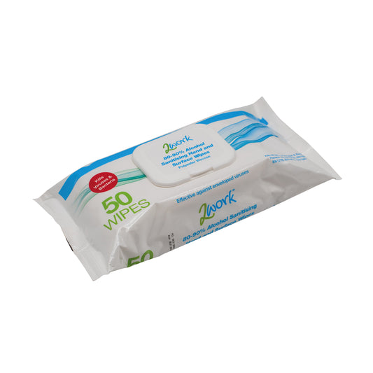 2Work Antibacterial Alcohol Hand Wipes Unfragranced (Pack of 50) 2W03485