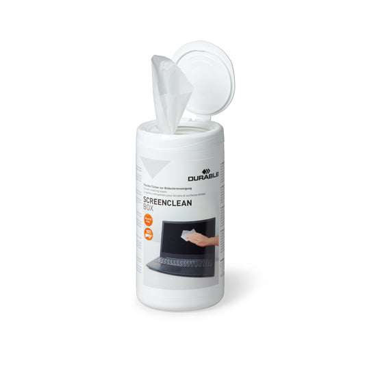 Durable Screenclean Box Wet Wipes Alcohol Free Bio-degradable White (Pack of 100) 573602