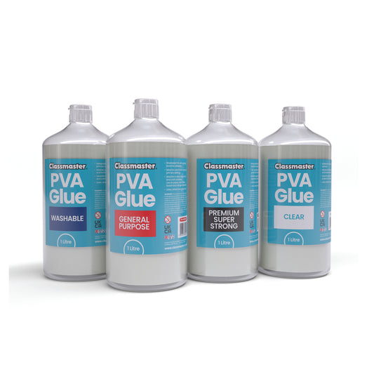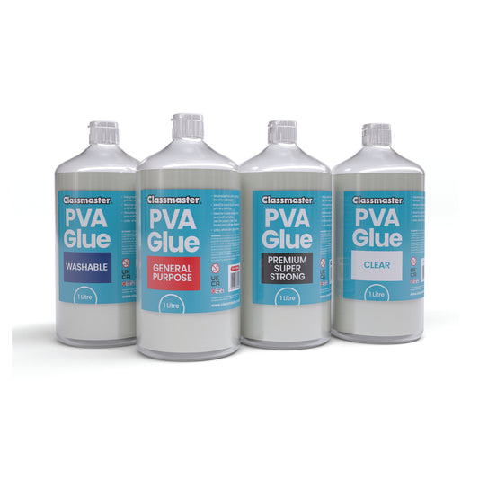 Classmaster White Washable Blue Label PVA Glue 1L Bottle with Screw Cap PVA1000BU