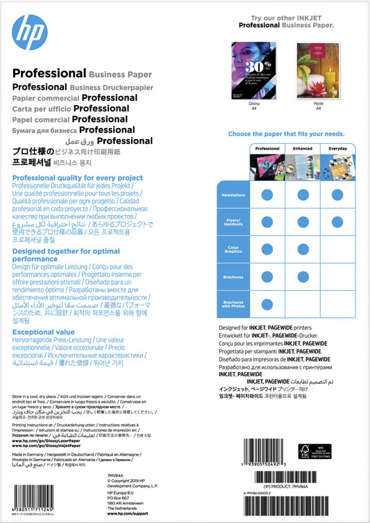 HP Professional Business Paper, Glossy, 180 g/m2, A4 (210 x 297 mm), 150 sheets