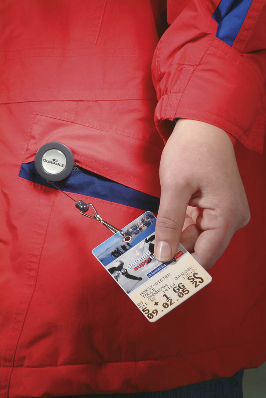 Durable Badge Reel Keyring Charcoal (Pack of 10) 8222/58