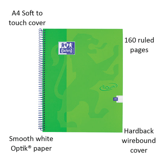 Oxford Touch Wirebound Hardback Notebook A4 Assorted (5 Pack) 400109986