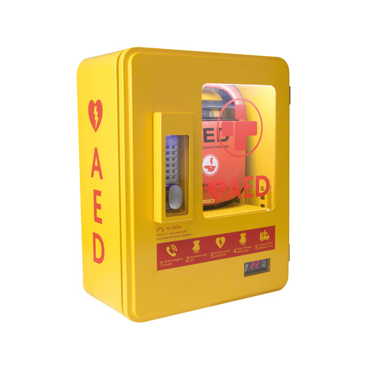 AED Alarmed Outdoor Wall Mountable Heated Metal Cabinet Yellow 2105