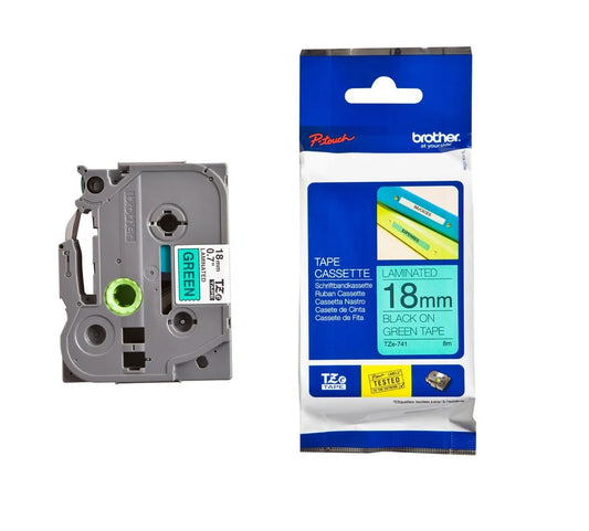 Brother Gloss Laminated Labelling Tape - 18mm, Black/Green label-making tape TX