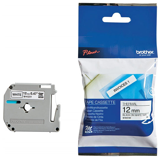 Brother P-Touch Tape Cassette 12mm Black on White Non Metallic Tape Blister Pack MK231BZ