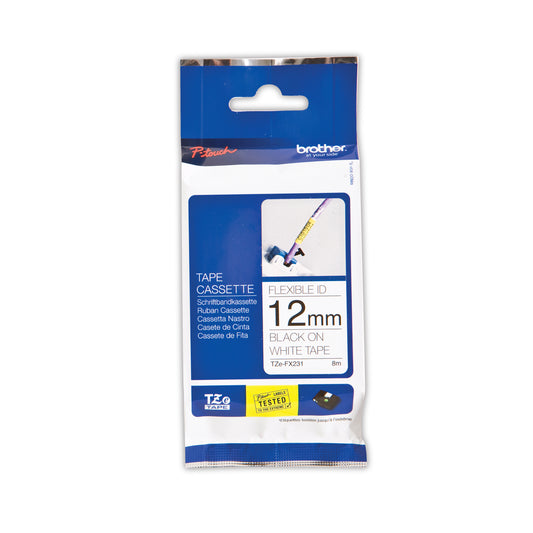Brother P-Touch TZe Labelling Tape Cassette 12mmx8m Black/White Flexible ID Labelling Tape TZE-FX231