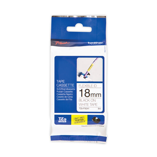 Brother P-Touch TZe Laminated Tape Cassette 18mmx8m Black/White Flexible ID Labelling Tape TZE-FX241