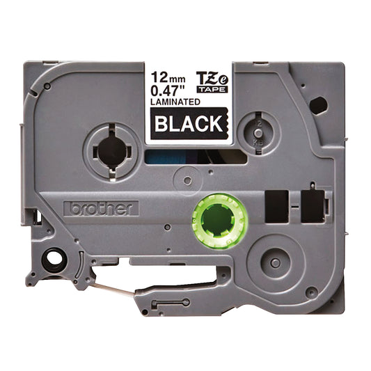 Brother P-Touch TZe Laminated Tape Cassette 12mm x 8m White on Black Tape TZE335