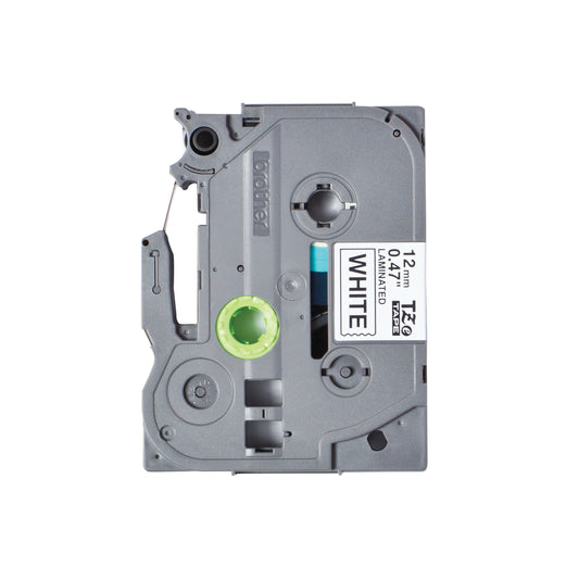 Brother P-Touch TZe Laminated Tape Cassette 12mm x 4m Black on White Tape TZE231S2
