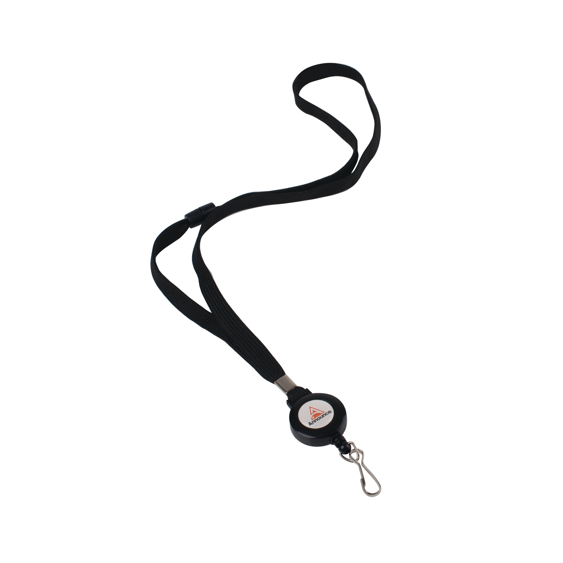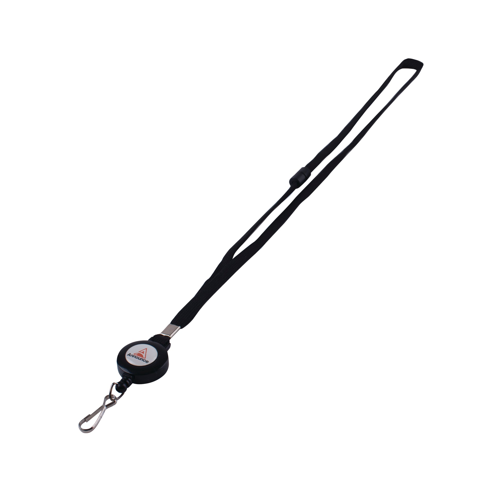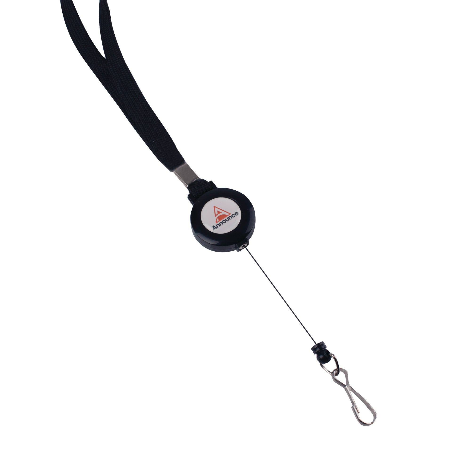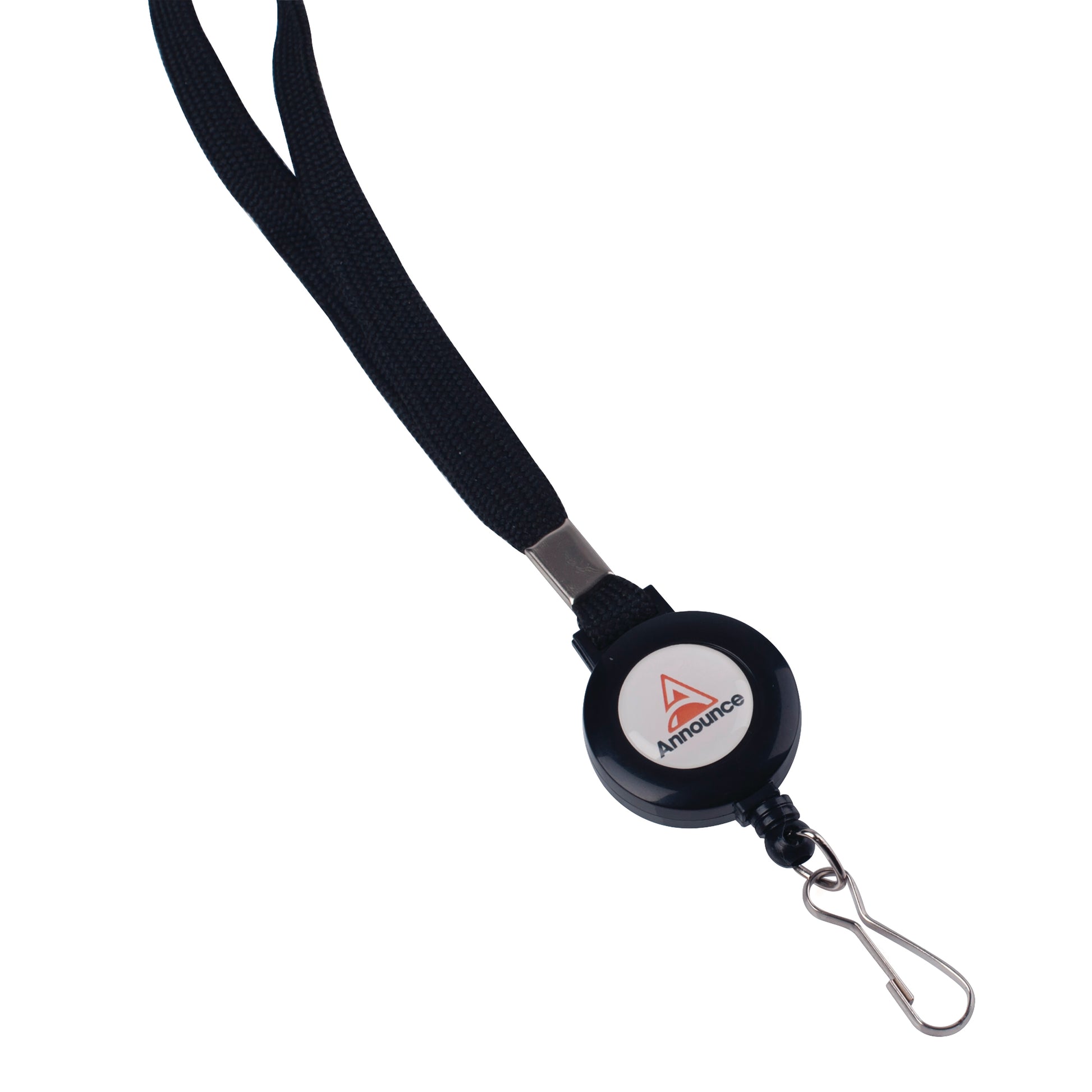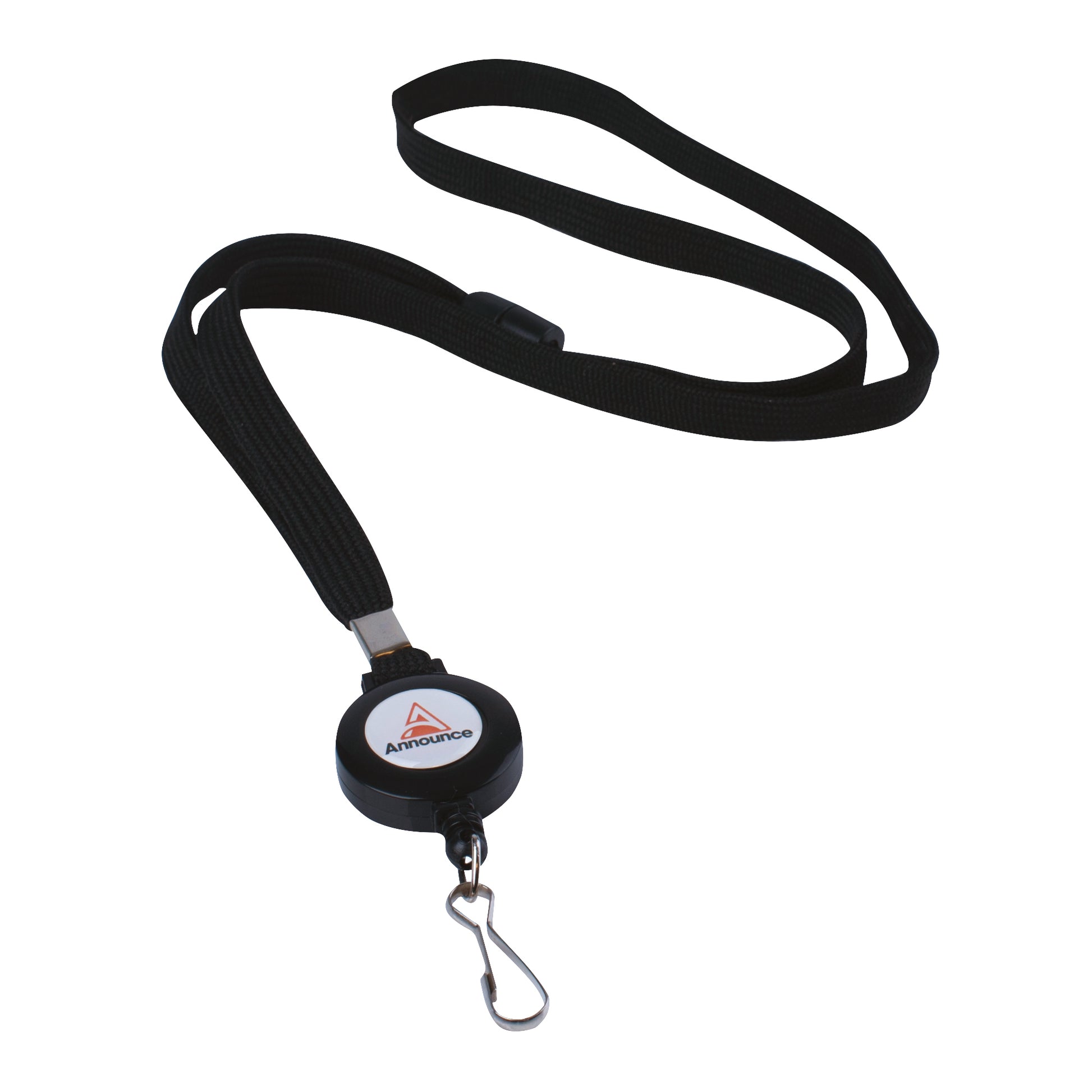 Announce Textile Lanyard with Badge Reel. Ideal for use with security badges and passes. Reel extends to 600mm with a lanyard length of 440mm. Safety snap clasp. Pack of 10.