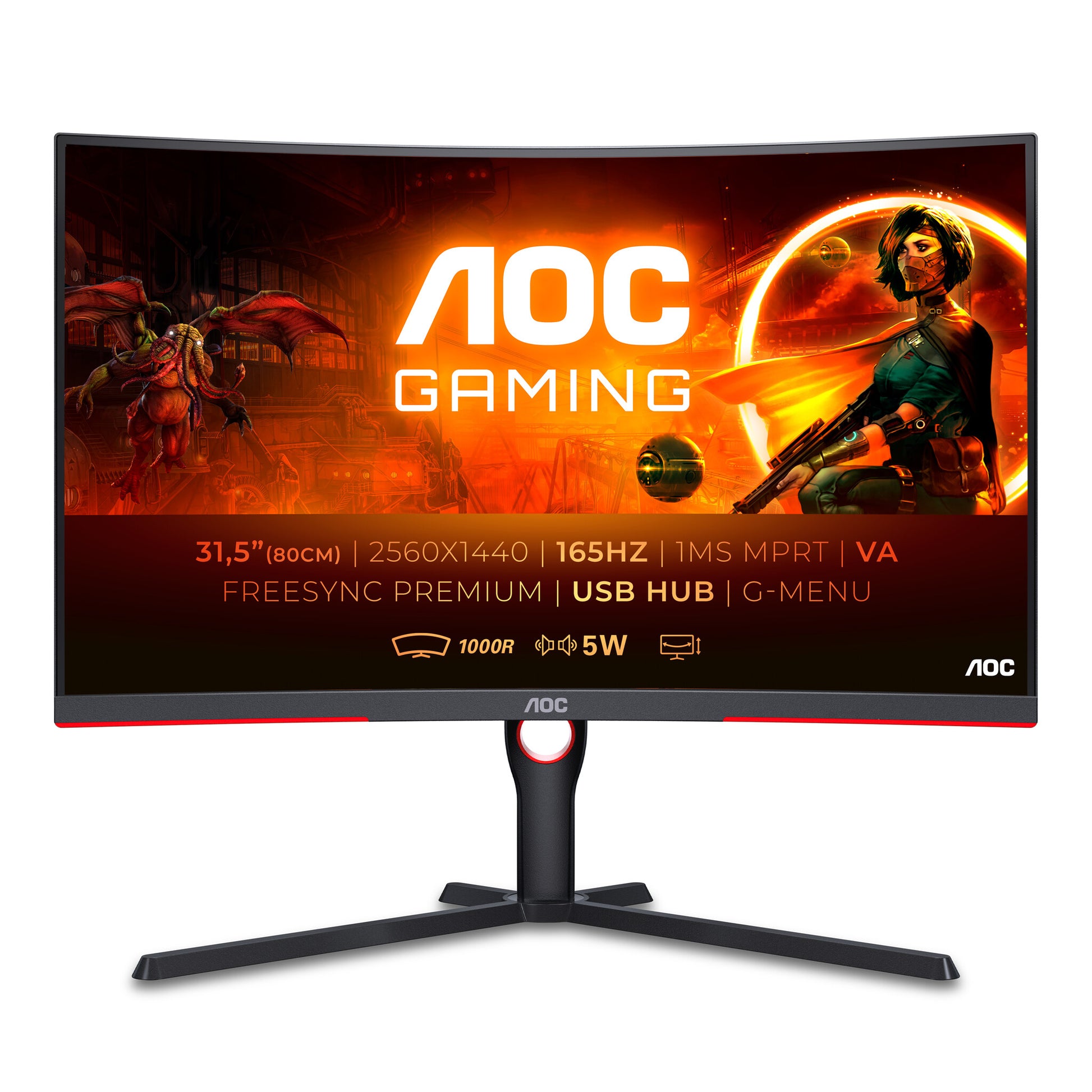 31.5" gaming monitor with curved 1000R QHD display, 165Hz refresh rate and FreeSync Premium