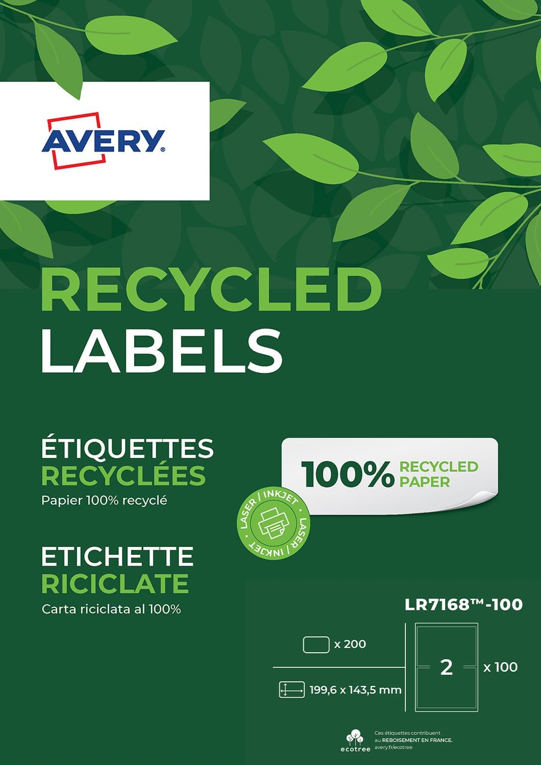 The Avery 199.6 x 143.5mm Self-Adhesive Labels (AVL7168-100) offer a high-quality solution for all your labeling needs. With a 200-label pack, these labels are ideal for organizing, addressing, and labeling products or items in both professional and personal settings.