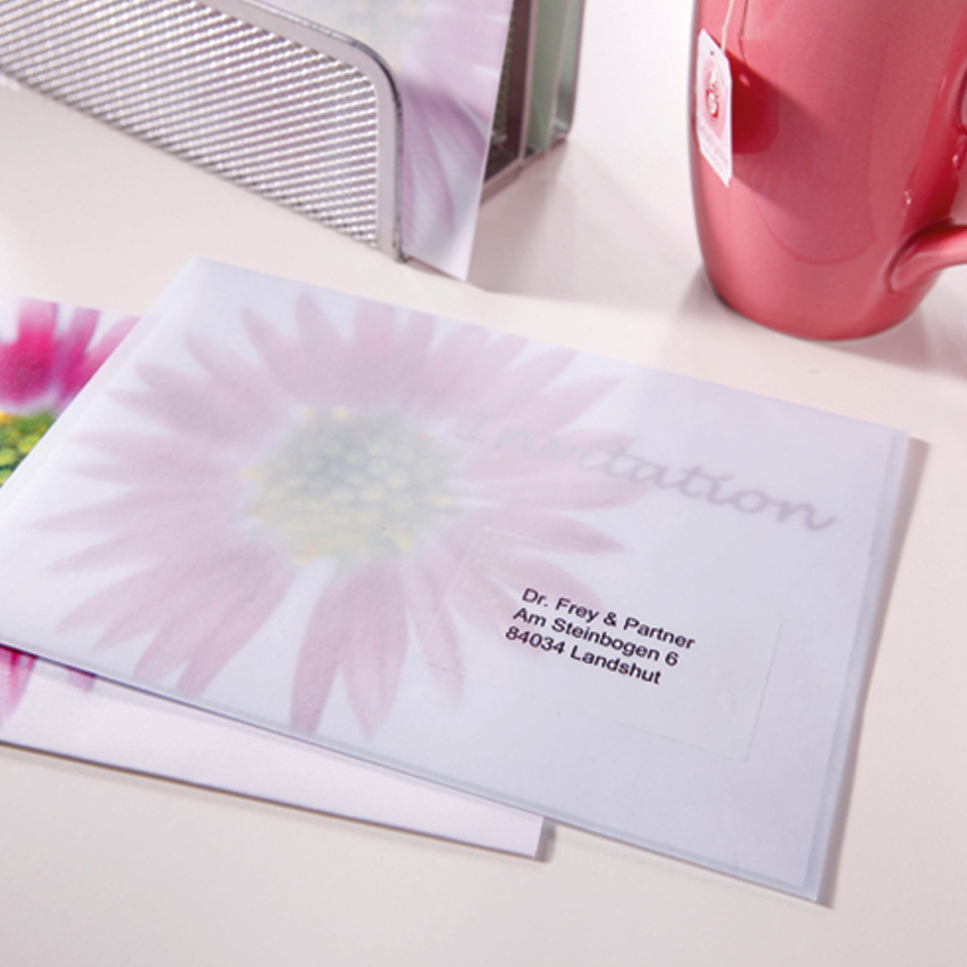 Avery Laser Mini Labels. Clear labels to enable envelopes to stand out and look professional. Fully compatible with the full range of LaserJet printers. Pack contains 1625 labels, with 25 sheets and 65 each sheet. Label size: 38x21mm. Colour: Clear.