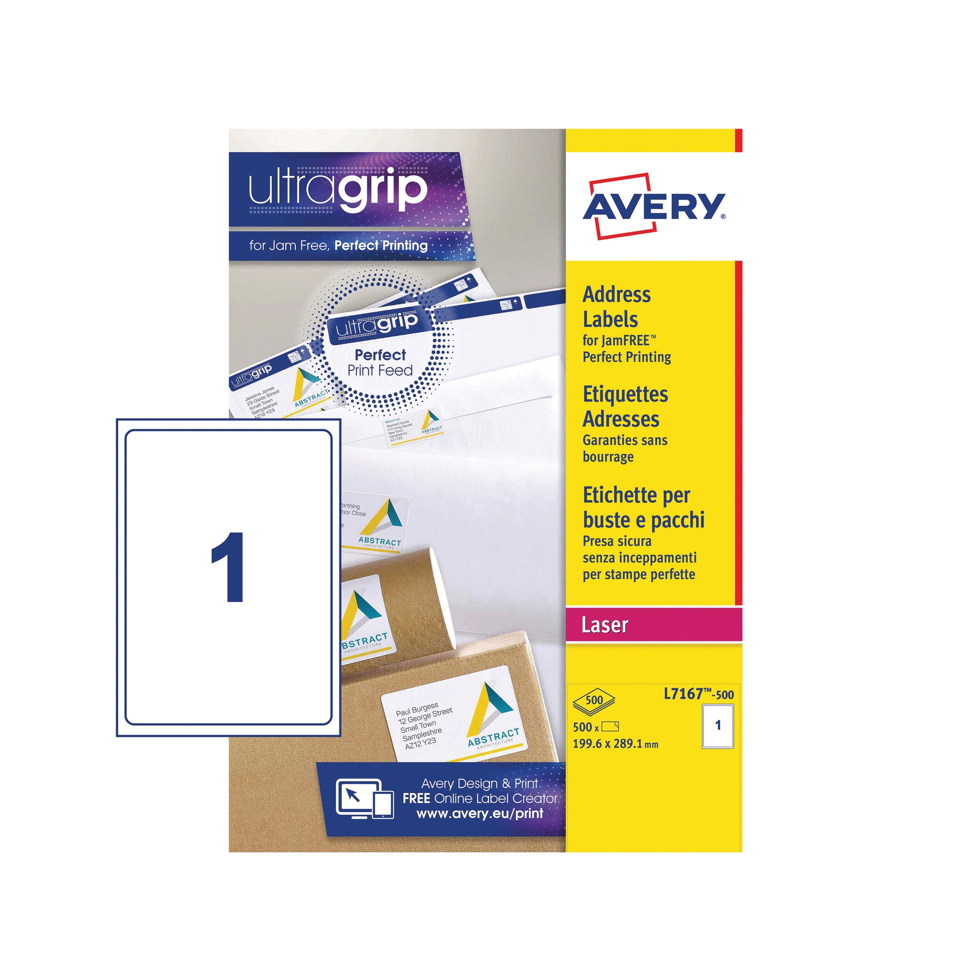 Avery Ultragrip Laser Parcel Labels 199.6 x 289.1mm 1 Per Sheet White (Pack of 500) L7167-500