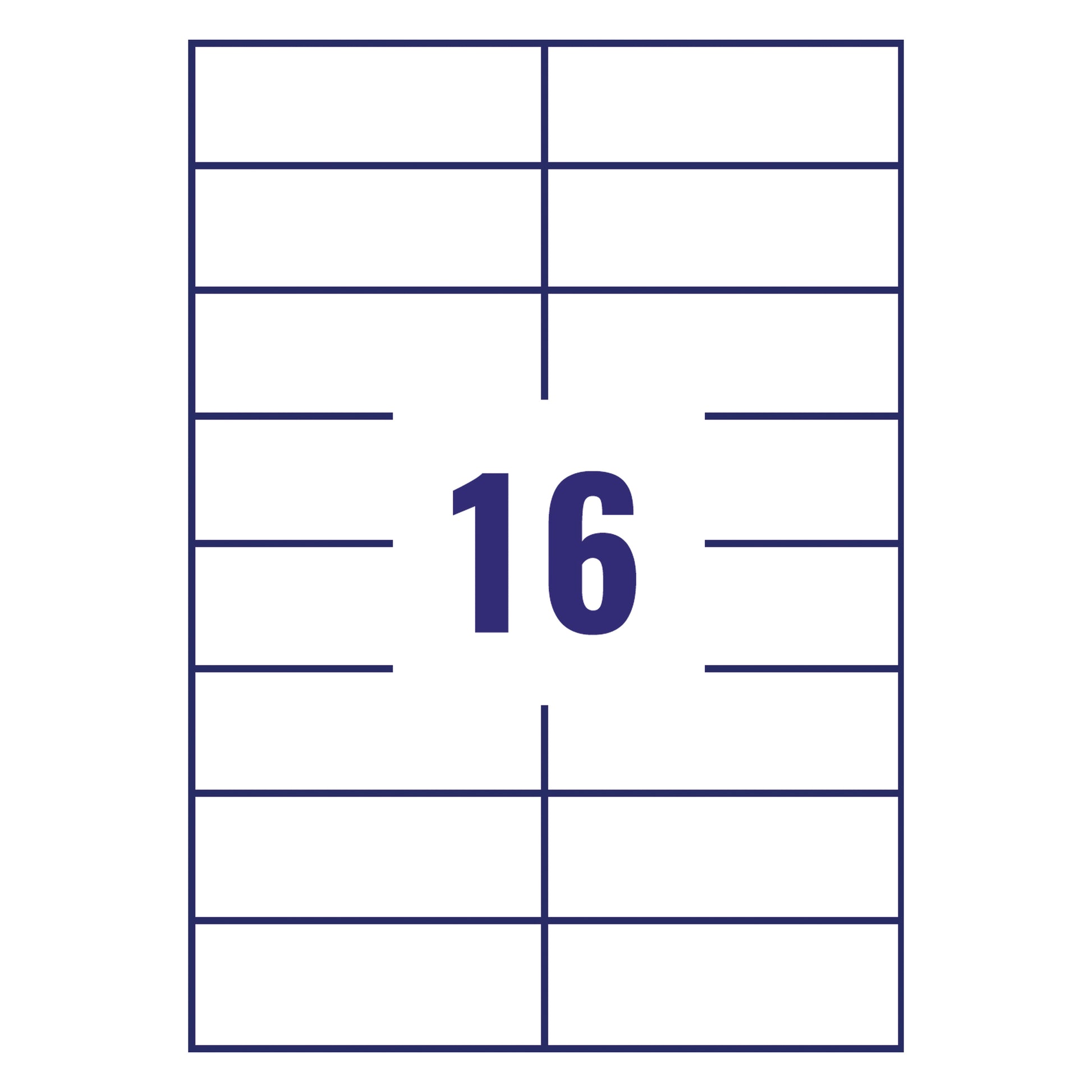 Avery Ultragrip Multipurpose Labels. Pack contains 100 A4 sheets with 16 labels per sheet (1600 labels in total). Label size: 105x37mm. Colour: White.