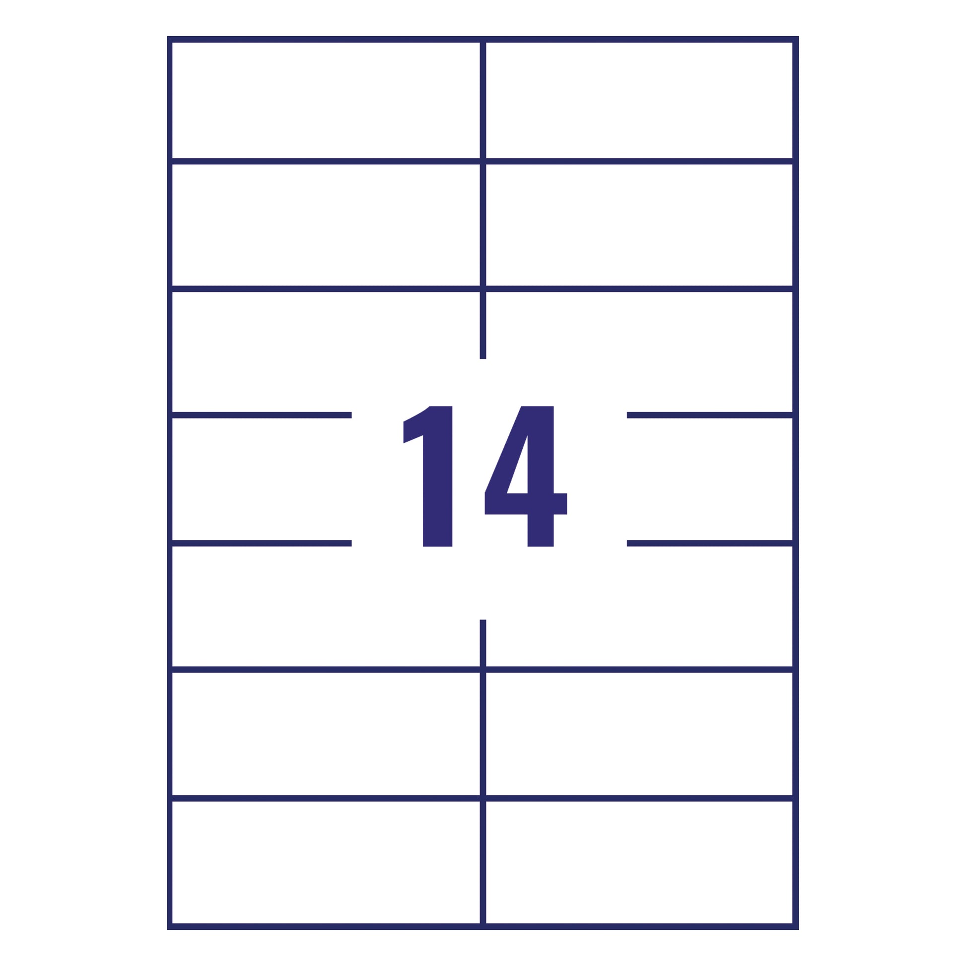 Avery Ultragrip Multipurpose Labels. Designed to be jam free, the labels provide reliable results with sharp prints and excellent adhesion. Contains 100 A4 sheets with 14 labels per sheet (1400 labels in total). Label size: 105x42.3mm. Colour: White.