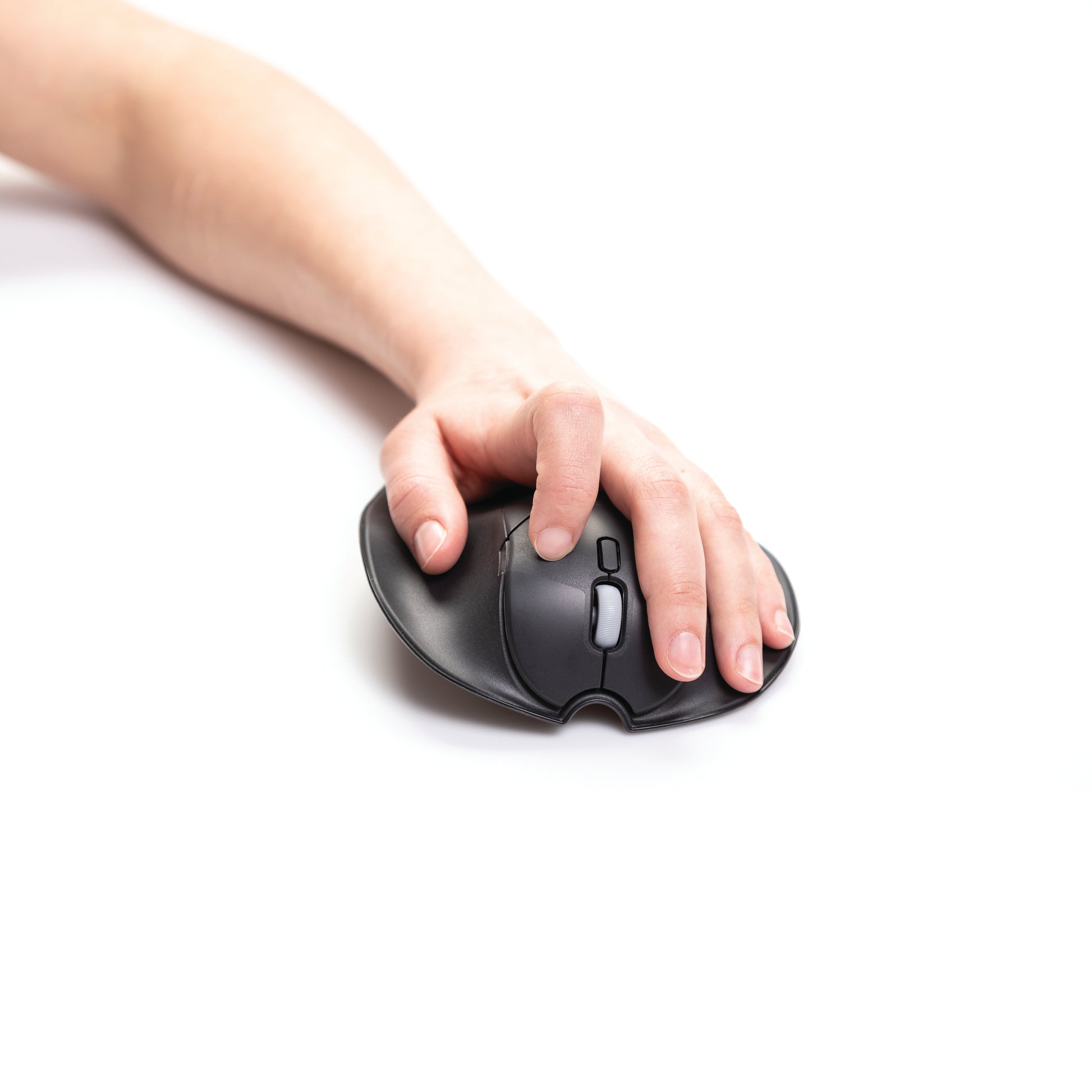 Bakker Elkhuizen HandshoeMouse Shift Ambidextrous Mouse Bluetooth Connectivity Large BNEPS210RLW. Lightly slanted palm/finger support. For both right/left handed users. Charging cable/protection case provided. 1 scroll wheel. 3 buttons. 1000 DPI setting.