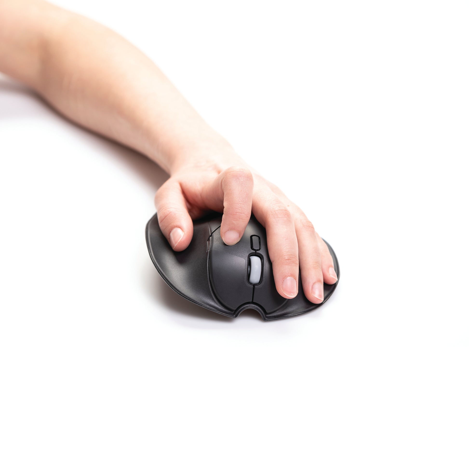 Bakker Elkhuizen HandshoeMouse Shift Ambidextrous Mouse Bluetooth Connectivity Small BNEPS170RLW. Lightly slanted palm/finger support. For both right/left handed users. Charging cable/protection case provided. 1 scroll wheel. 3 buttons. 1000 DPI setting.