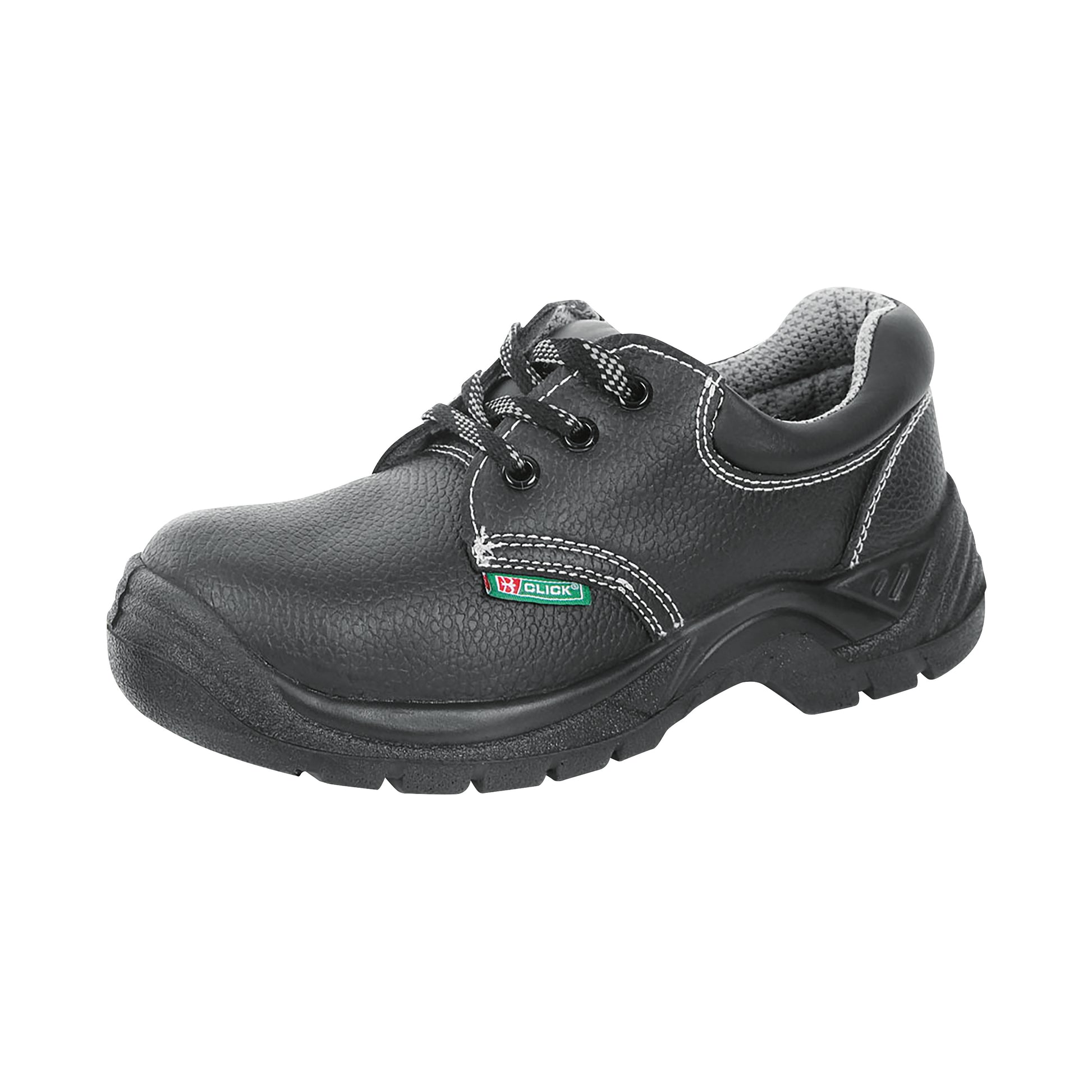 Beeswift Dual Density PU S3 Safety Shoe. 200 Joule steel toe cap. Steel midsole protection. Shock absorber heel. Anti-static. Oil resistant sole. Water resistant leather upper, grey stitching. Contrast grey mesh lining. Conforms to EN ISO 20345: S3 SRC.