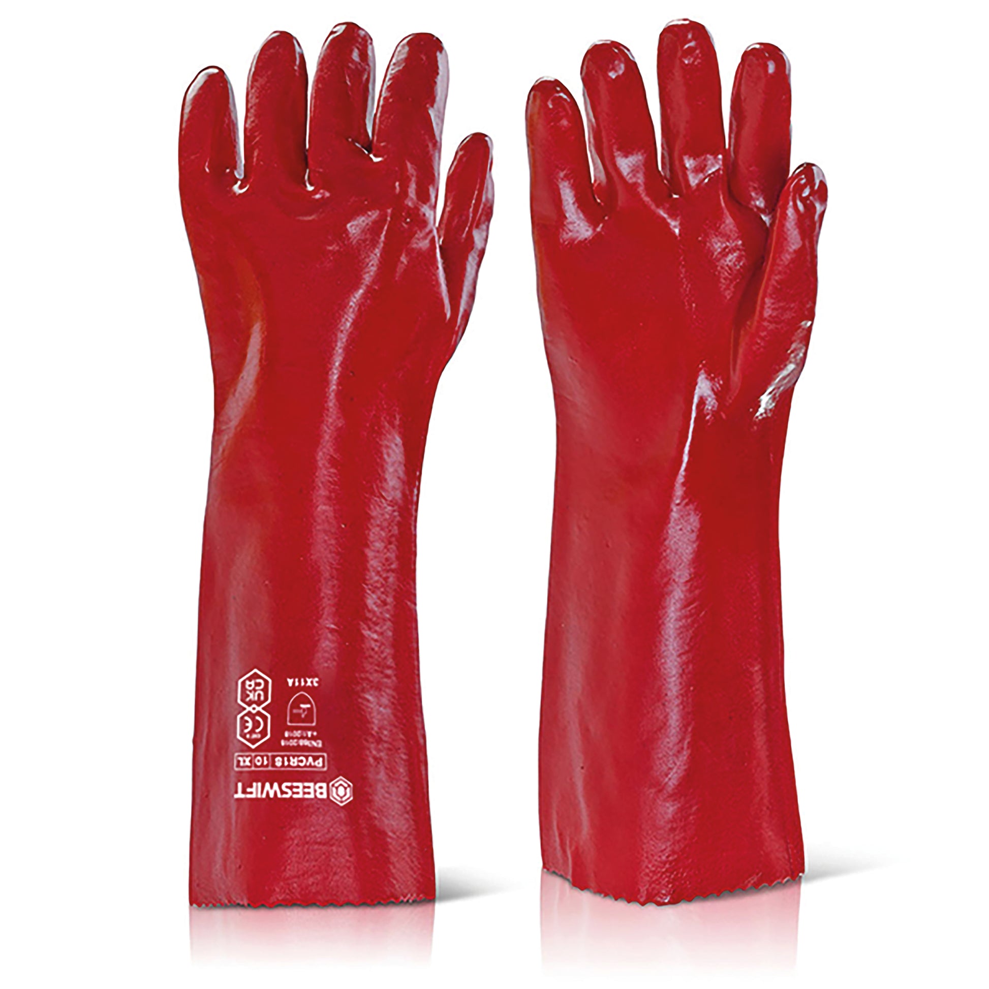 Beeswift PVC gauntlet gloves for general use with building work or general handling.