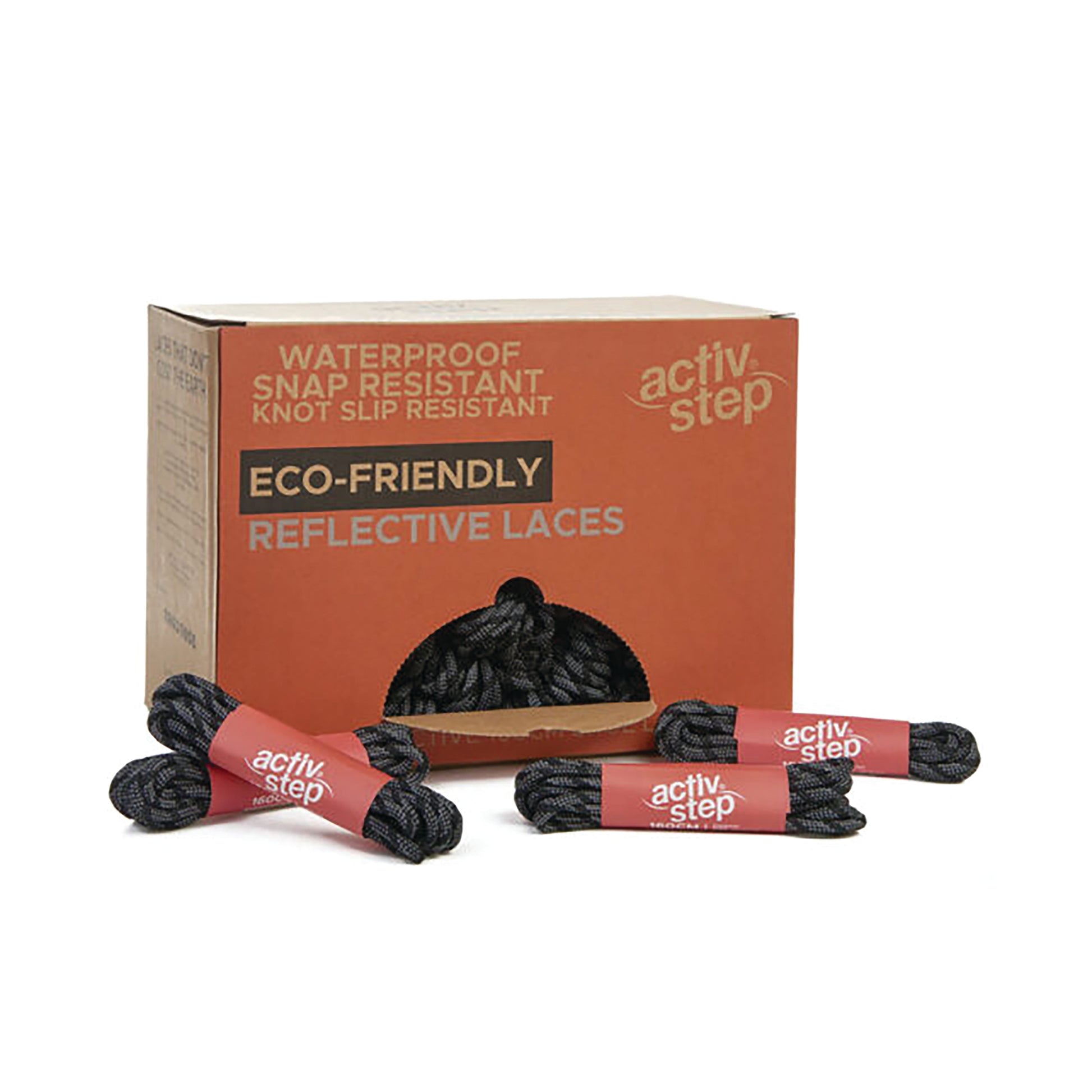 Activ-Step technical performance high visability boot laces. The laces are waterproof and snap resistant and also knot slippage resistant. Manufactured using recycled plastic bottle polyester that has wear resistance higher than normal industry standards.