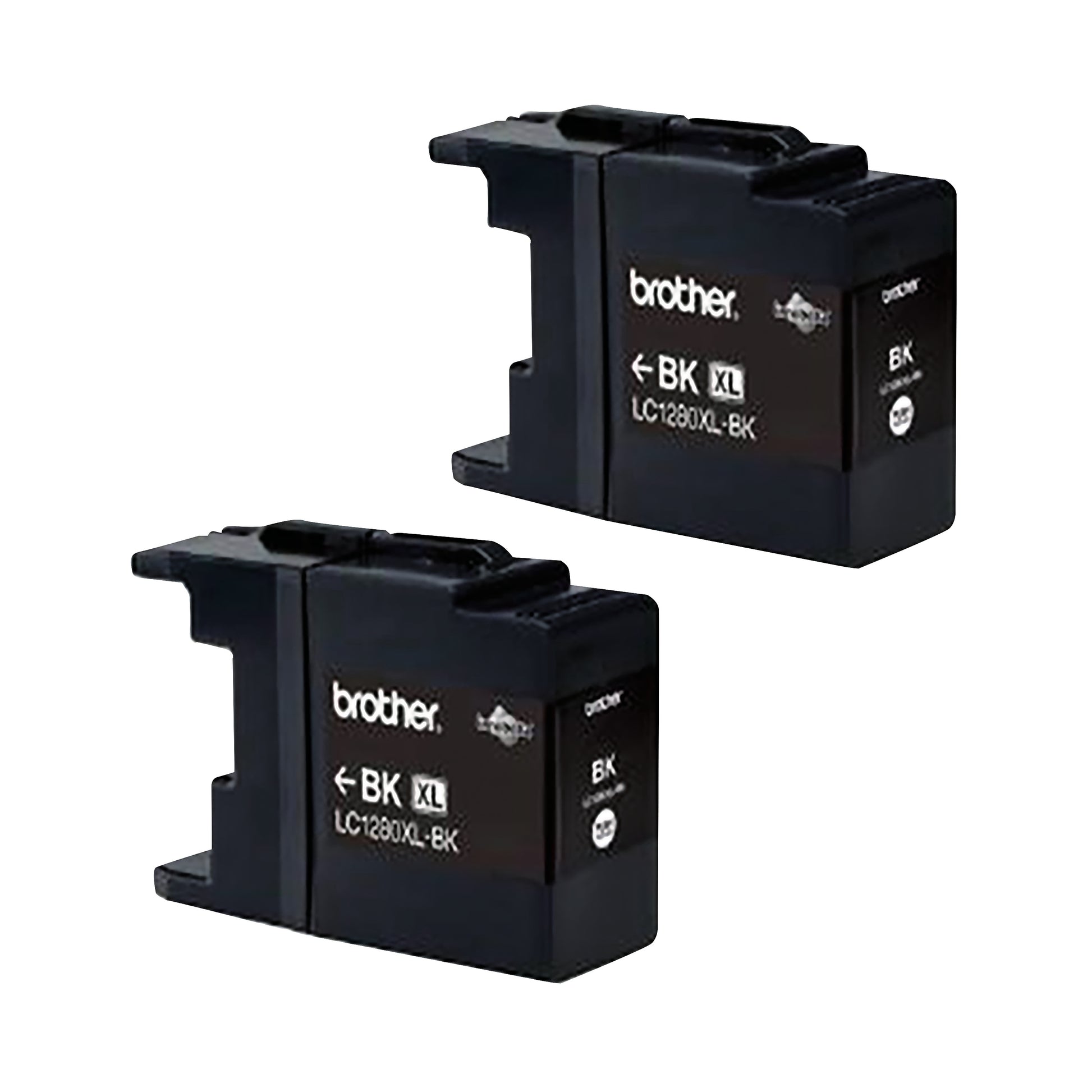 Brother LC1280XLBK Inkjet Cartridge Twinpack High yield. Black LC1280XLBKBP2. Page yield: up to 2400 per cartridge. Compatible with: MFC-J5910DW/J6510DW/J6710DW/J6910DW. High yield.