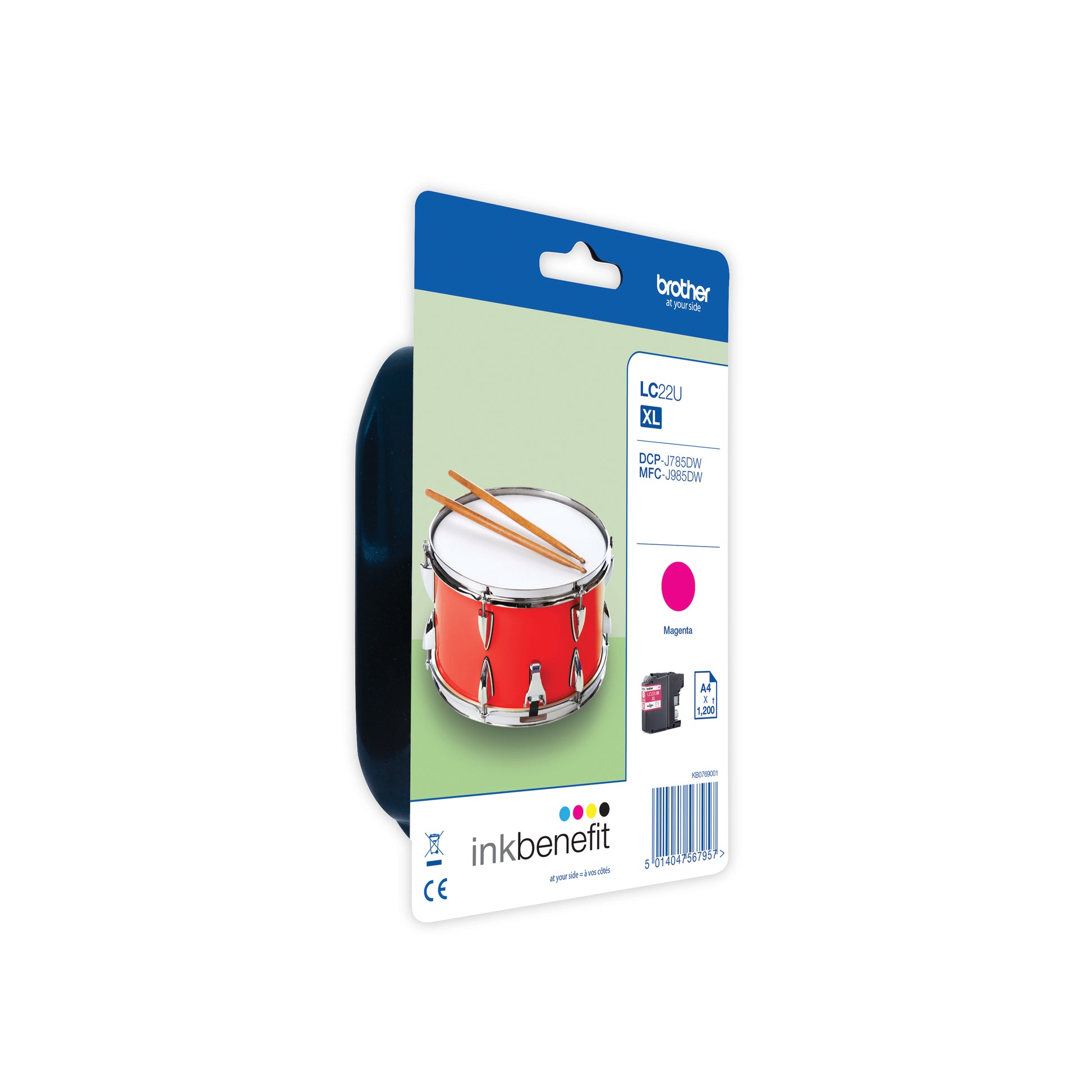 Brother LC22UM Inkjet Cartridge Magenta LC22UM. Page yield: up to 1,200. Compatible with: Brother MFC-J985DWXL/DCP-J785DW and MFC-J985DW printers. Standard yield. Original Brother inkjet cartridge.