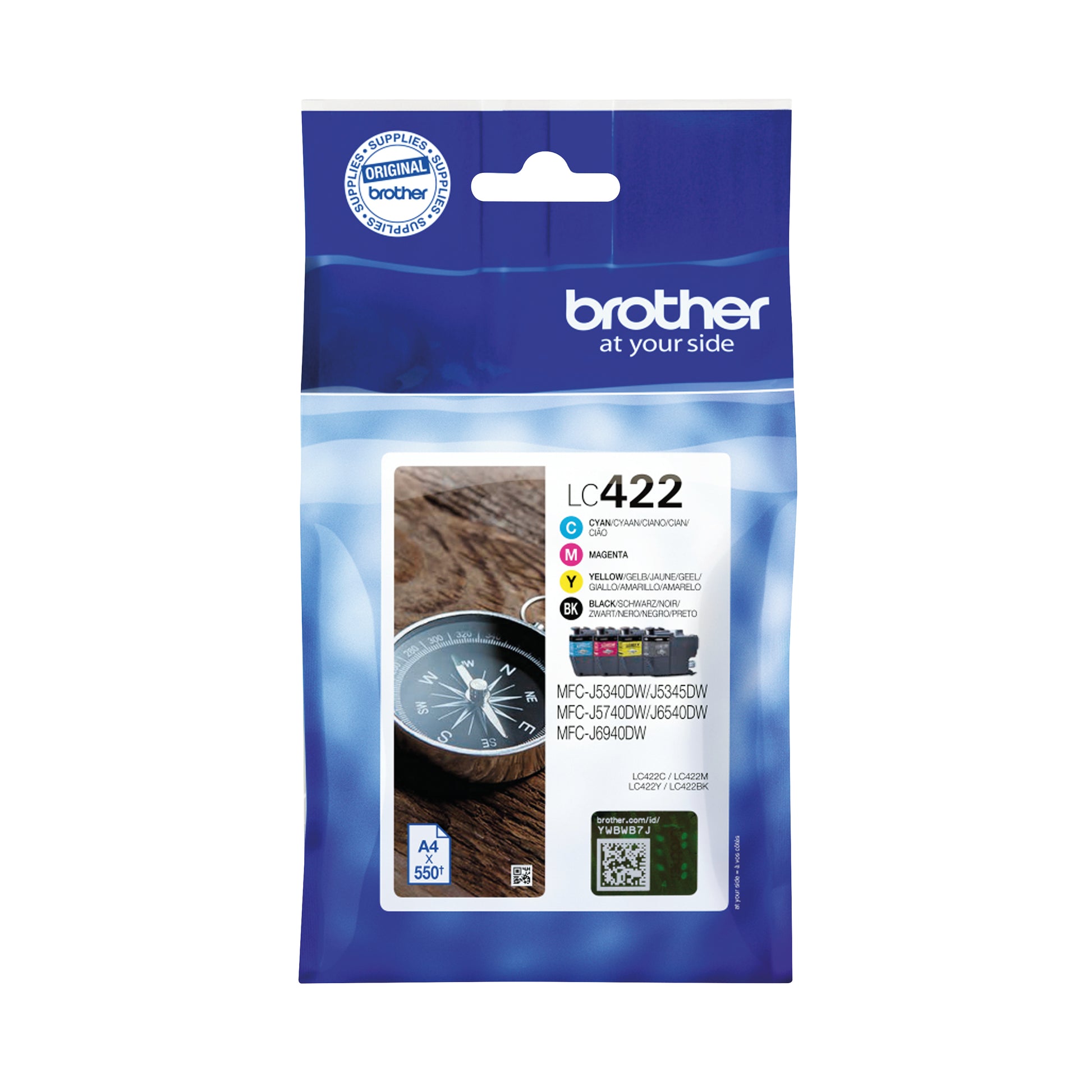 Looking for a cartridge that offers effortless performance every time you print? The Brother LC422VAL multipack (including black, cyan, yellow and magenta ink cartridges), with colour fade resistant properties guarantees smooth, reliable and top quality printouts from your first to your last print. Our perfectly balanced inks ensure your printer stays working at its best.