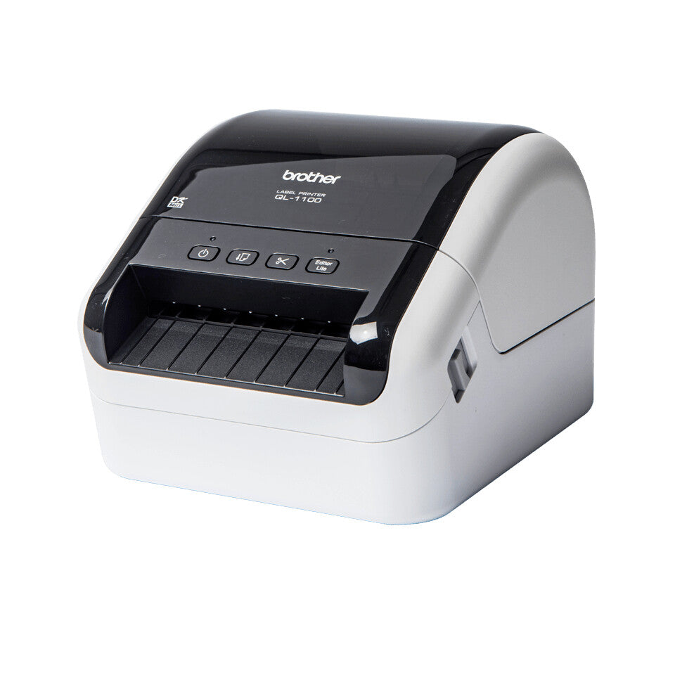 The Brother QL-1100c is a high-speed shipping label printer, ideal for printing barcodes and large shipping labels in warehouses and mail rooms. Features a true 4 inch (101.6mm) print width and USB connectivity to print from Windows and Mac.