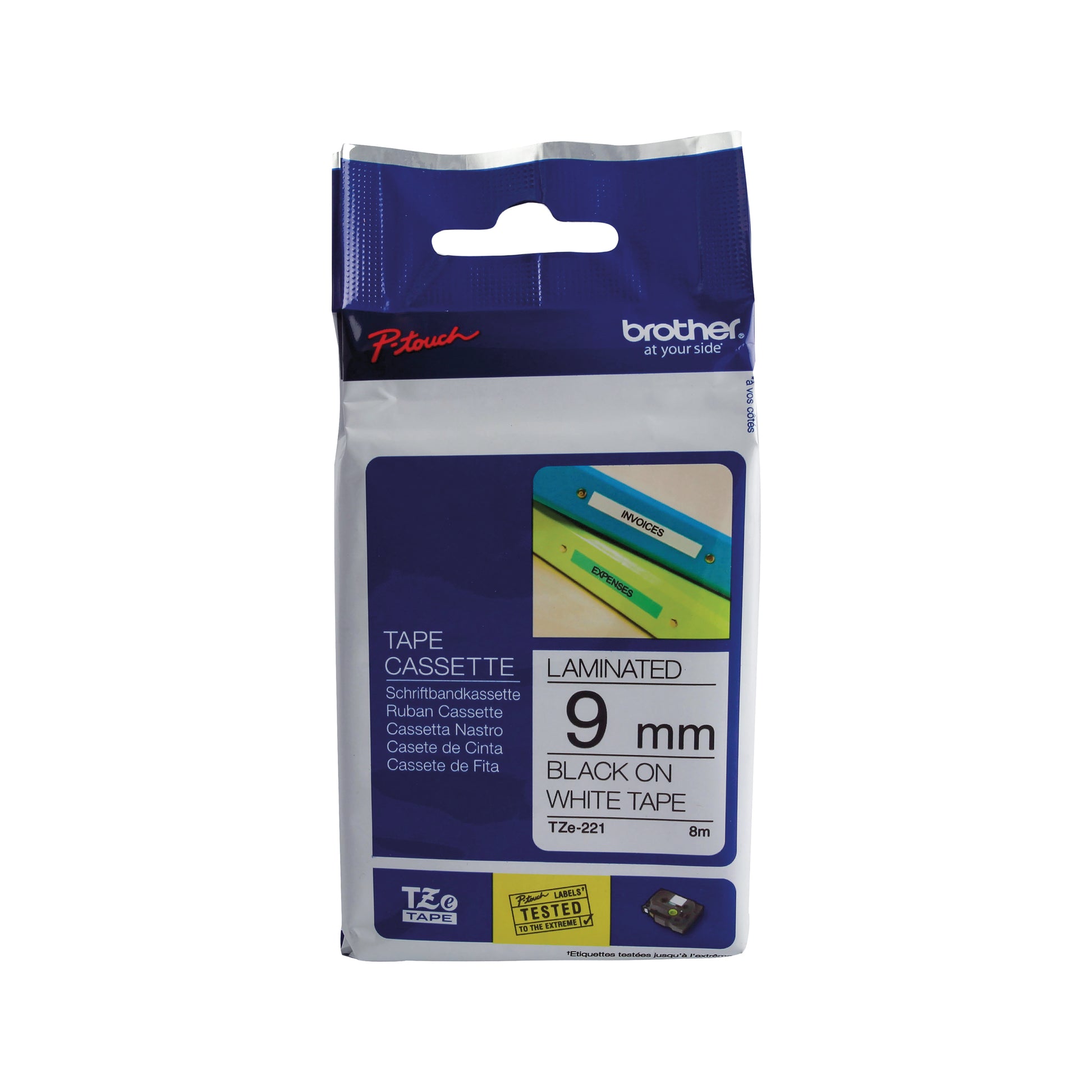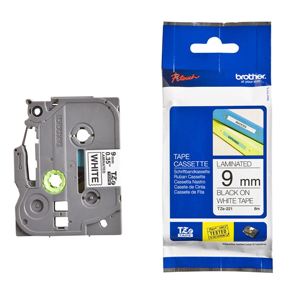 A laminate film on the tape protects text and colours from all kinds of agents such as chemicals abrasives etc. commonly found in industrial environments. Tape is waterproof and extremely temperature resistant. P-touch tape TZ-221 9mmx8m Black on White.