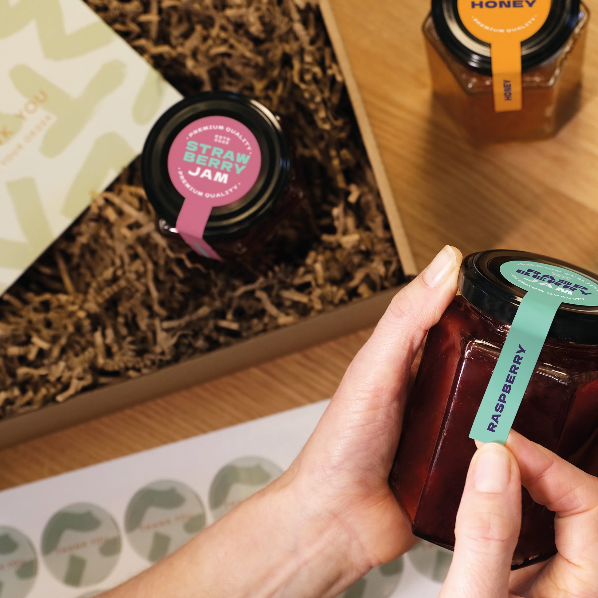 Avery Business Starter Guide and Kit Food and Beverage BUSK3. You can design your labels at AVERY.CO.UK/PRINT. You can customize the products, packaging, and shipping with the logo and branding of your company. All products included are paper.
