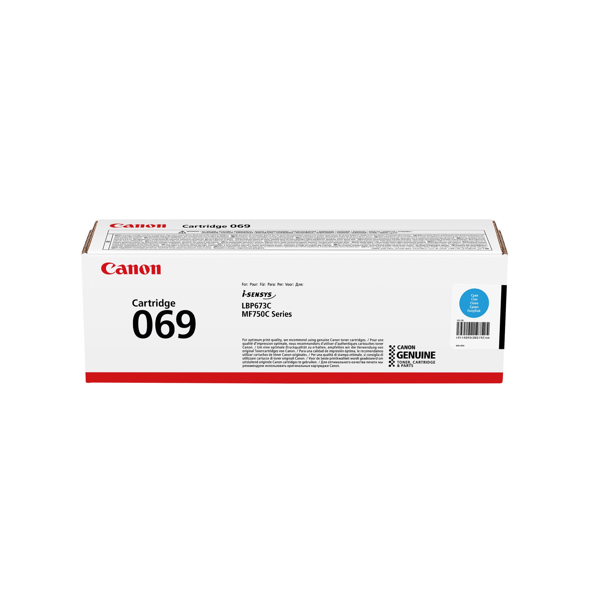 Canon 069 Toner Cartridge Cyan 5093C002. Page yield: up to 1,900 pages. Compatible with: i-SENSYS MF752Cdw, i-SENSYS MF754Cdw, i-SENSYS LBP673Cdw. Genuine Canon laser toner cartridge. Standard yield capacity.