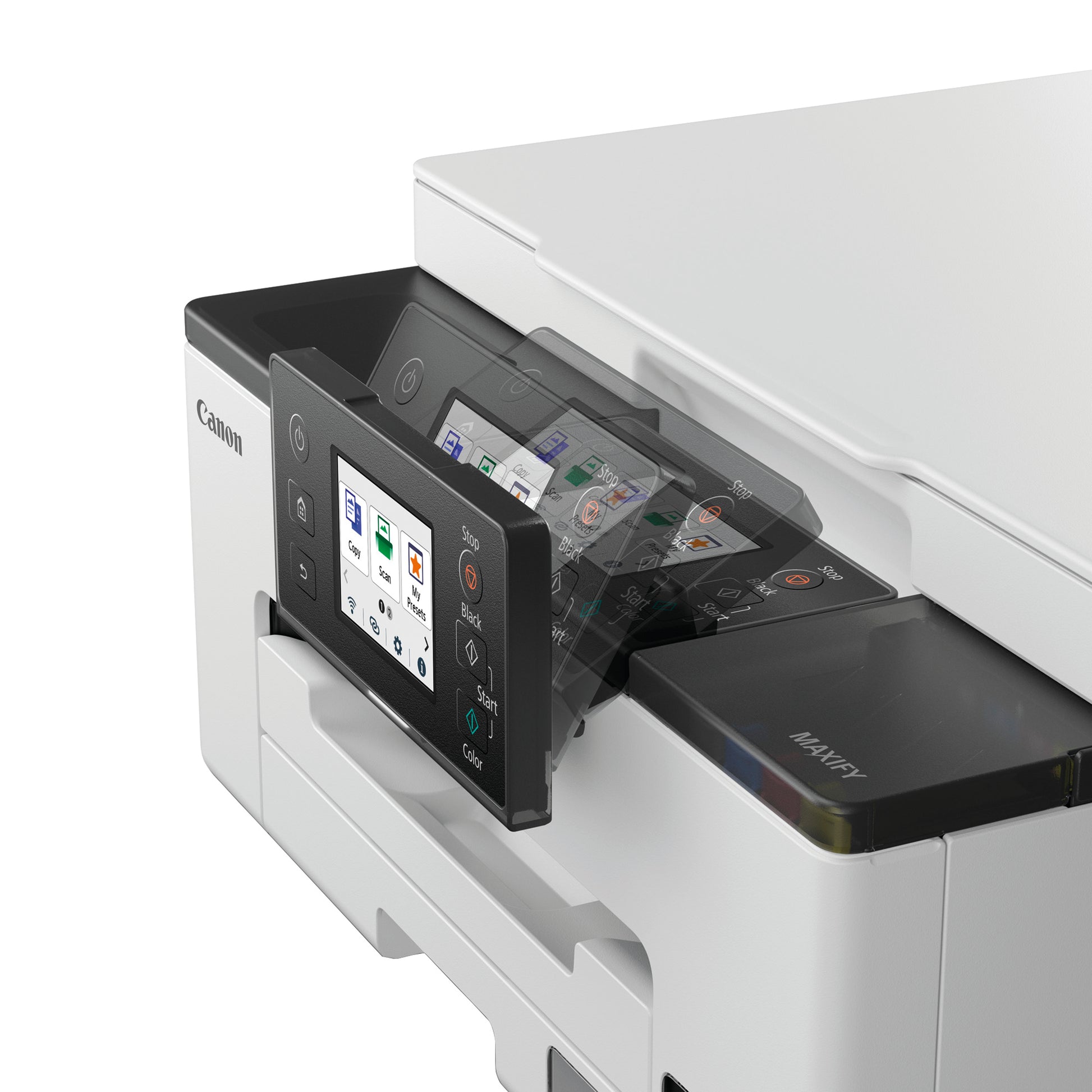 Canon Maxify GX1050 Multi-Function 3-In-1 A4 Inkjet Printer GX1050. Print, copy and scan. Print speed: 15 ipm (mono) and 10 ipm (colour). Copy speed of 9.1 ipm (colour). Flatbed (Platen) CIS colour scanner. Connectivity: USB, dual band Wi-Fi and Ethernet.
