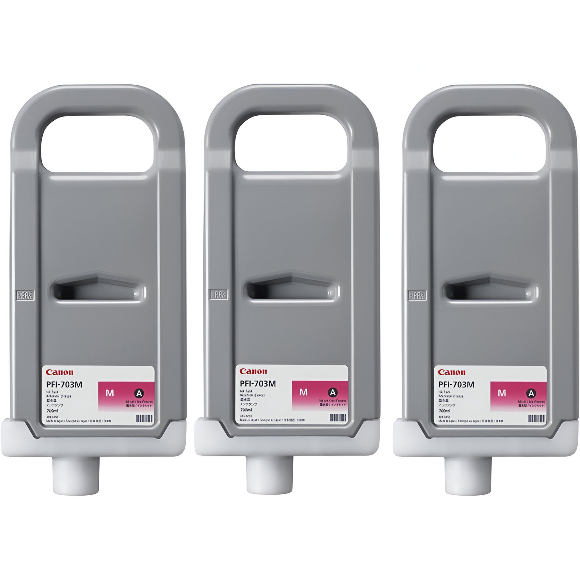 The Canon PFI-703M3 is a 3 pack 700ml Magenta Ink Tank. It is designed for use with select Canon large-format printers. This ink is designed to offer superior image quality and durability. This unit is compatible with imagePROGRAF iPF810, imagePROGRAF iPF810 PRO, imagePROGRAF iPF820 and imagePROGRAF iPF820 PRO models.