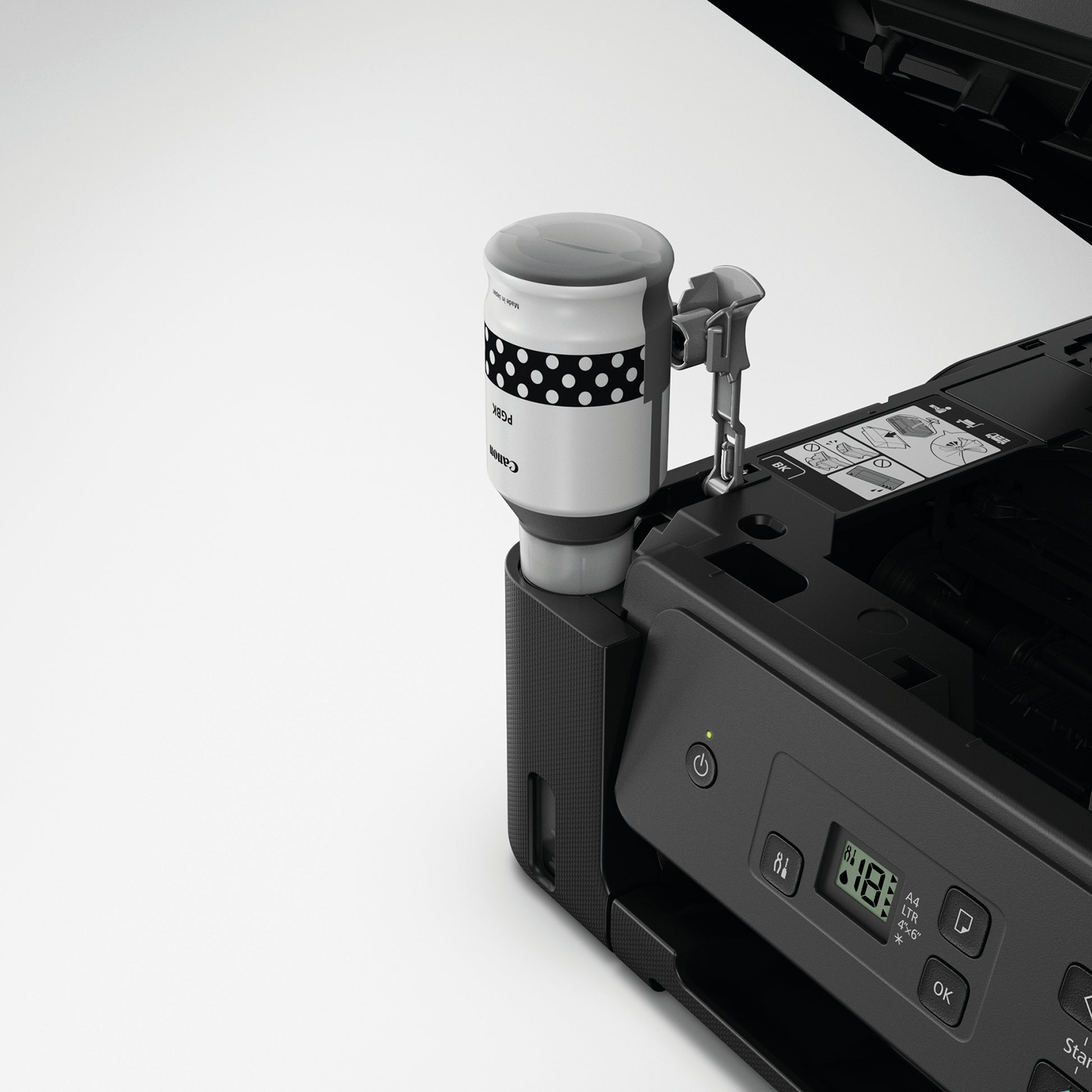 Canon Pixma G2570 3in1 Refillable Ink Tank Printer 5804C008. Print, copy, scan. Print speed 11 ipm (mono) and 6.0 ipm (colour). Print res 4800x1200 dpi. Multiple copy 99 copies (max). Scan res 600 x 1200 dpi (optical). Hi-Speed USB (USB B Port).