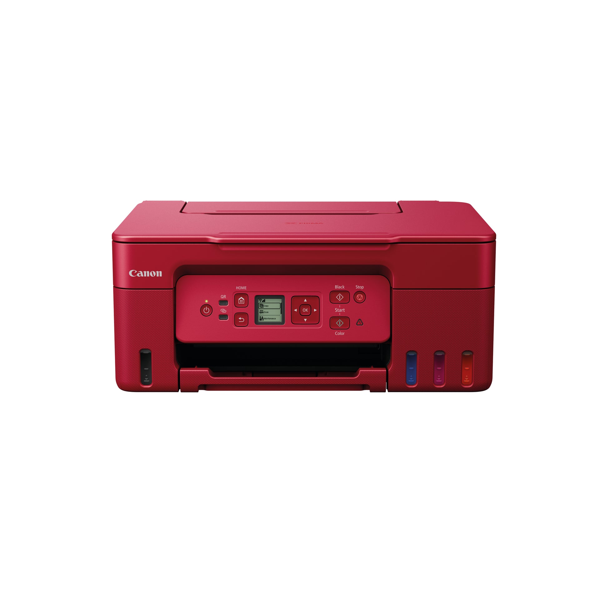 Canon Pixma G3572 Multifunction Printer Red 5805C048. Wi-Fi, Print, copy, scan, Cloud. Refillable ink tank. Print speed 11 ipm (mono)6.0 ipm (colour). Print res 4800x1200 dpi. Copy Econ, Stnd, High. Scan res 600x1200 dpi (optical). Hi-Speed USB.