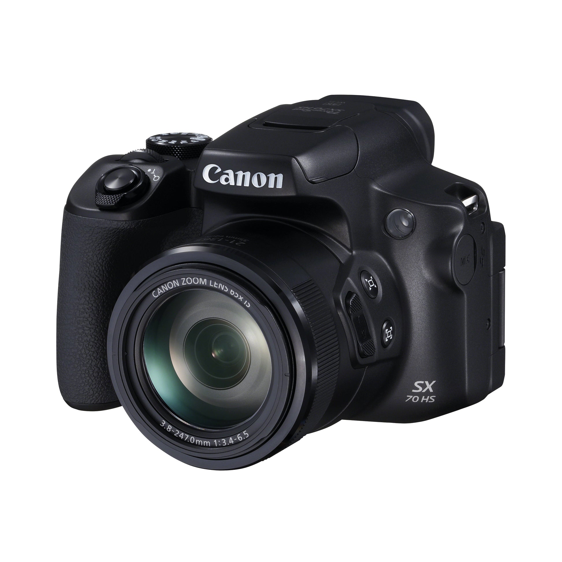 Canon PowerShot SX70 HS Camera 3071C011. Top of the range bridge digital camera with a DSLR aesthetic. 20.3 MegaPixel camera. 65x optical zoom. Reliable autofocus feature. Record in stunning 4K UHD. Remote connectivity through smart devices.