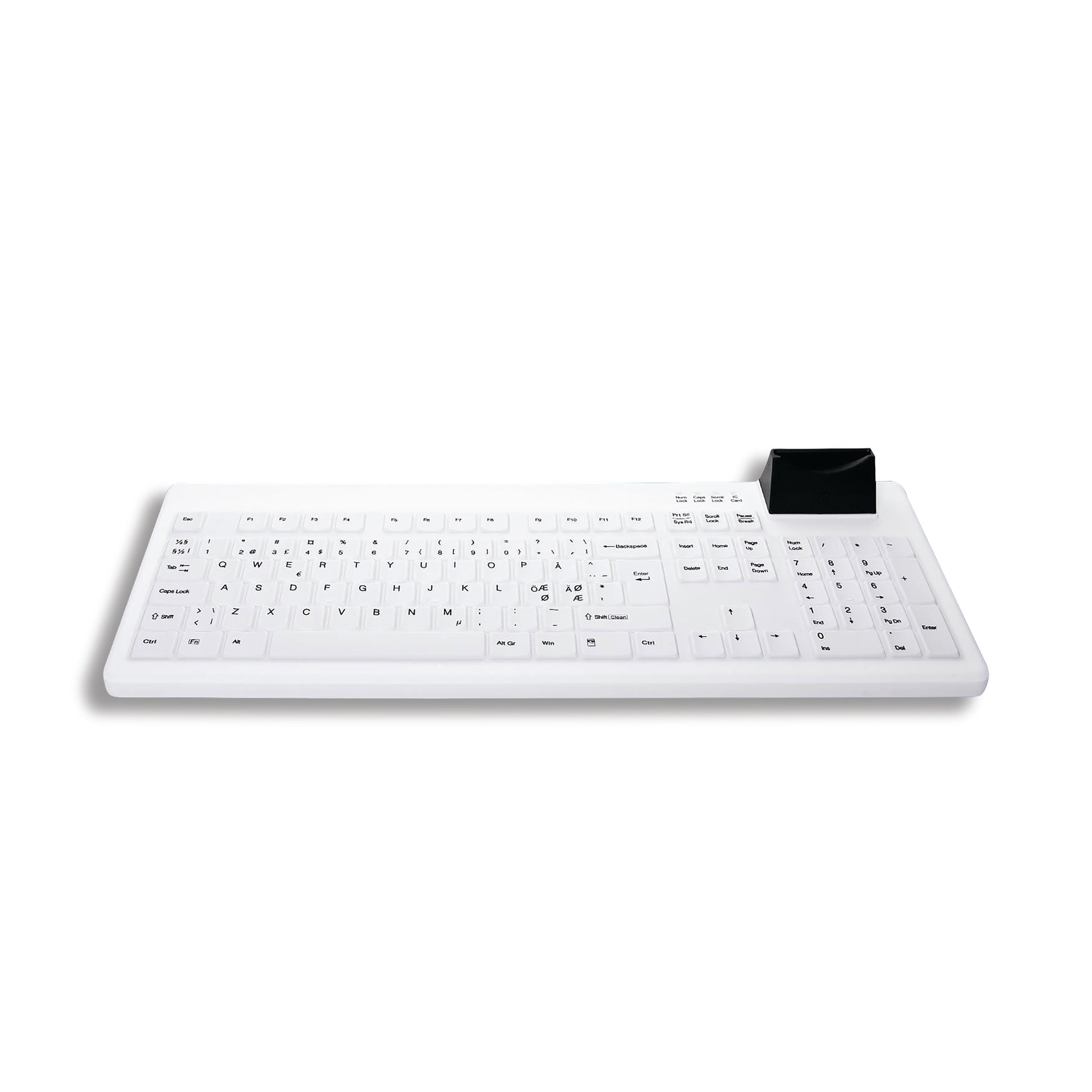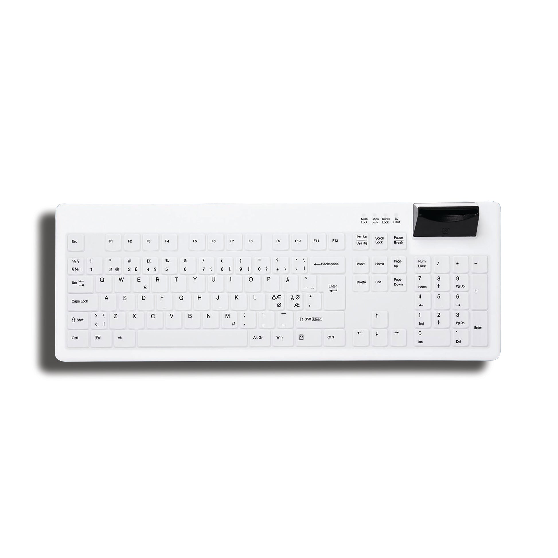 Cherry AKC8200 Hygiene Keyboard with Integrated Smartcard Reader White AKC8200FUVBW/UK. For applications in the field of access control, data encryption with digital signature and online payment methods. Keyfield is protected against dirt, splash water.