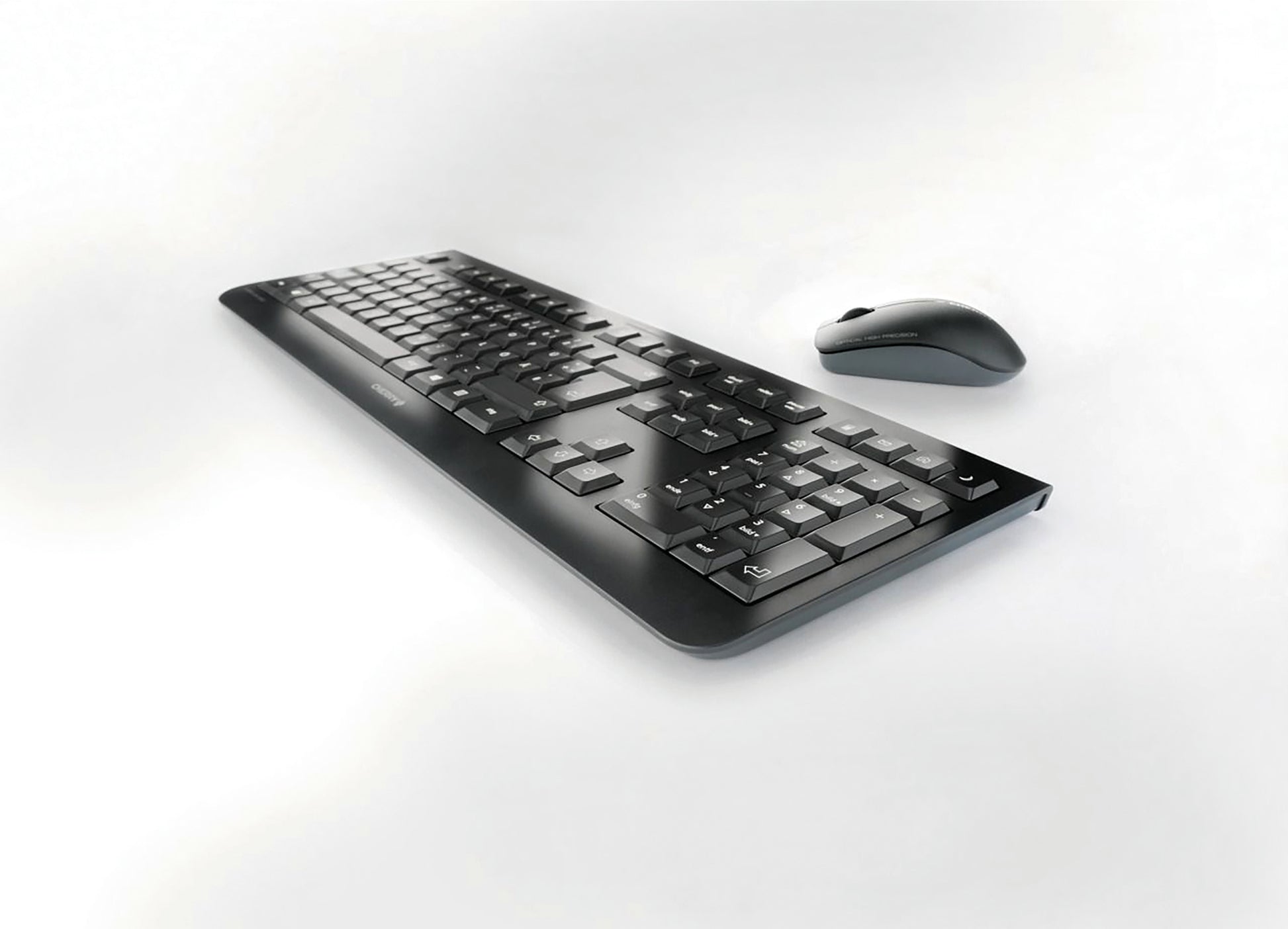 CHERRY DW 3000 Wireless Keyboard/Mouse Set Black JD-0710GB-2. Wireless keyboard with whisper quiet wear resistant keys. 3 button ambidextrous optical mouse. The 2.4 GHz technology has a wireless range of up to 10m with simple plug and play via USB.
