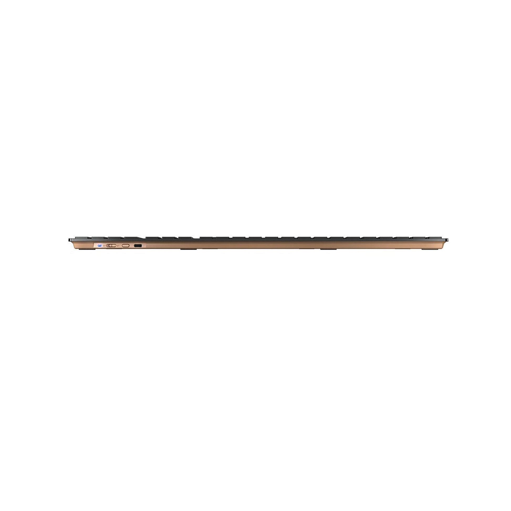 The keyboard contains an integrated metal plate, lending it an optimal sturdiness and stability. If you prefer a steeper angle while typing, you can adjust the wireless keyboard using the removable magnetic strip. High stability is ensured by the metal plate, which prevents bending and bounding when typing.